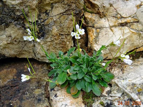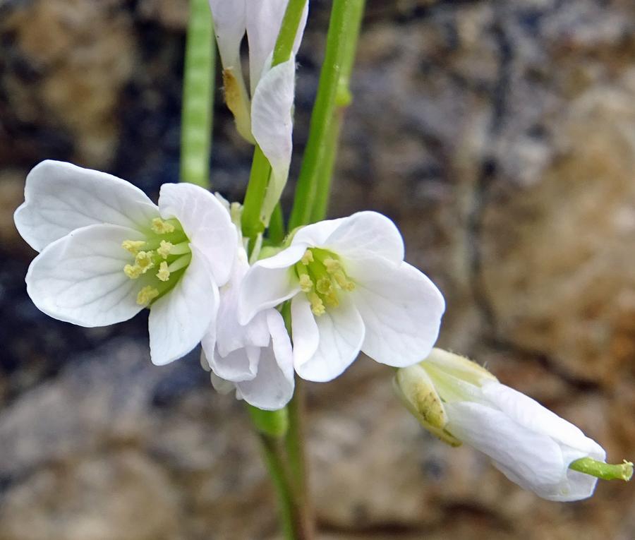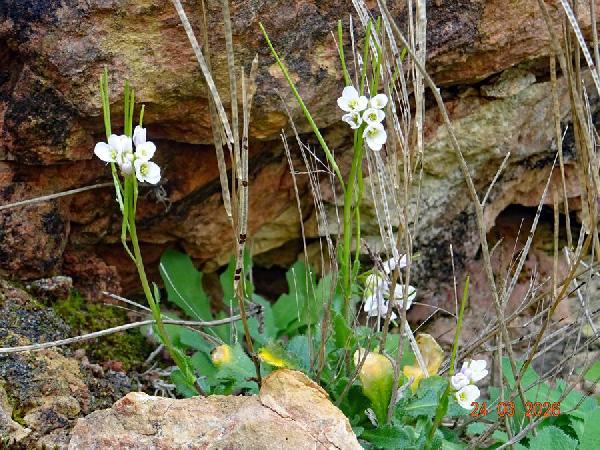 L’arabetta collinare è una specie delle montagne del Mediterraneo, presente, con due sottospecie, in tutte le regioni d'Italia salvo che in Friuli Venezia Giulia. Cresce in pascoli aridi, boscaglie, fessure di rupi e muri, da 300 a 2220 m circa. Il nome generico è di etimologia incerta: potrebbe alludere al fatto che alcune specie crescono su suoli aridi e sabbiosi come il deserto d'Arabia. Forma biologica: emicriptofita scaposa. Periodo di fioritura: luglio-agosto. - Presenza nel Parco: localizzata e poco comune. - Prataglia (Baroni, 1897-1908, sub Arabis muralis), San Paolo in Alpe (Zangheri, 1966a, sub A. muralis; Zangheri, 1966b, sub A. muralis), Par. Naz., vers. tos. (Viciani & Gabellini, 2002). |