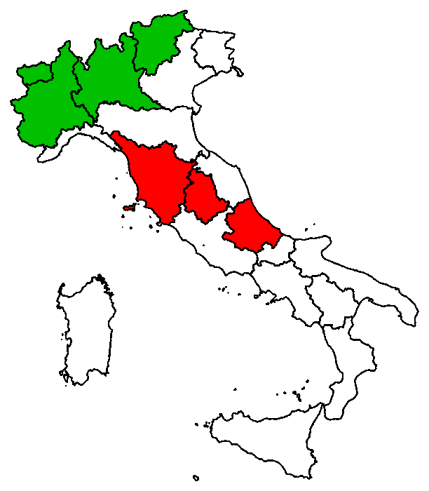 Abruzzo: segnalazione erronea / recorded by mistake; Lombardia; Piemonte; Trentino-Alto Adige; Toscana: segnalazione erronea / recorded by mistake; Umbria: segnalazione erronea / recorded by mistake; Valle d'Aosta;