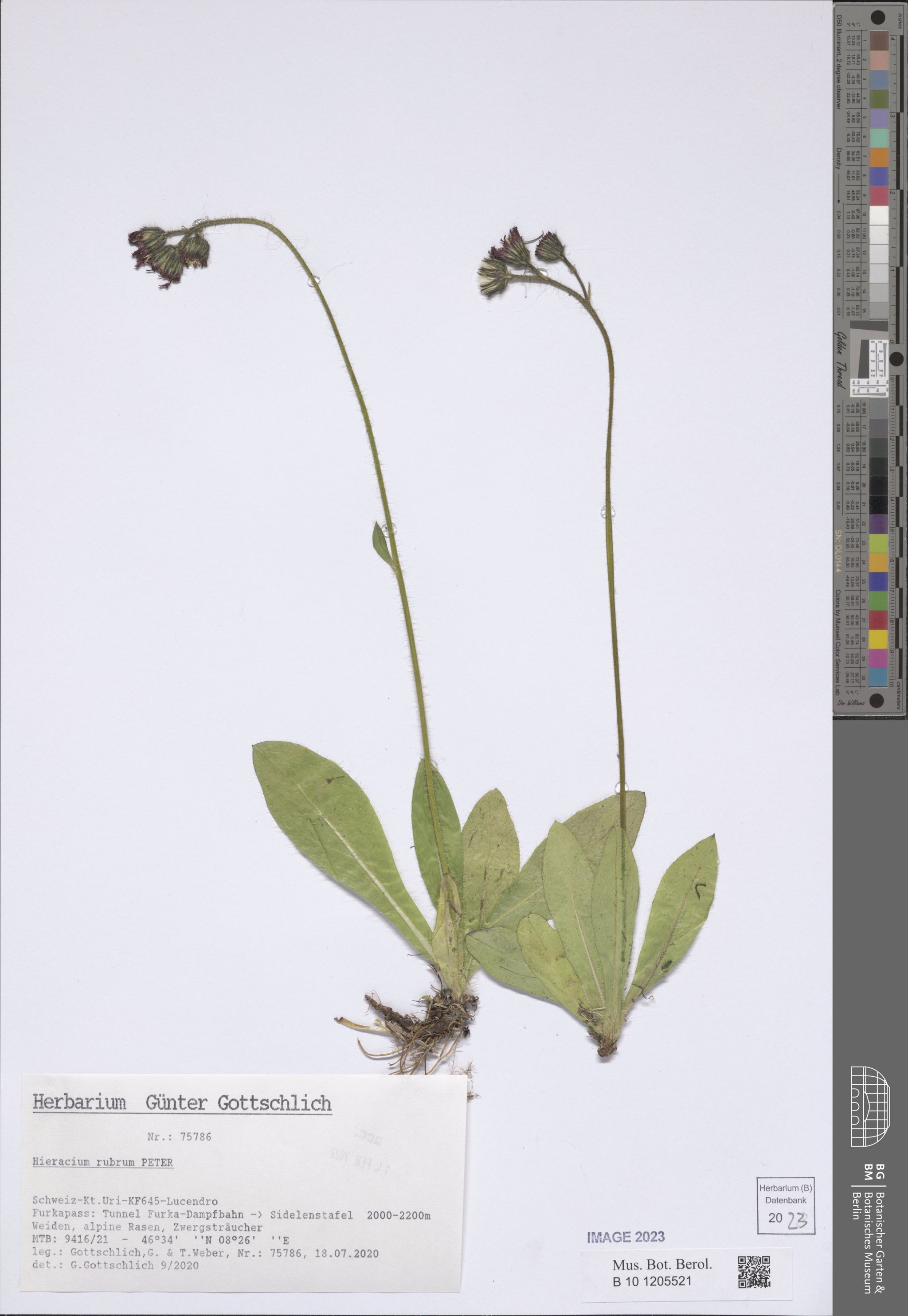 Sinonimi / Synonyms: Hieracium aurantiacum L. subsp. rubrum (Peter) Nyman; Hieracium chaunanthes (Nägeli & Peter) Zahn; Hieracium rubrum Peter;