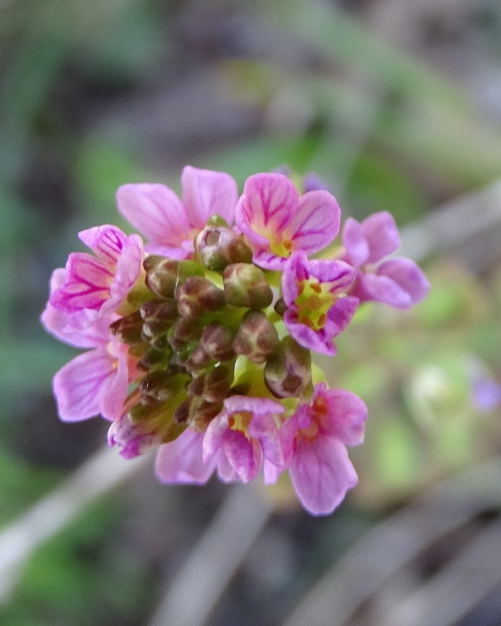 Italian name(s): Erba-storna carnicina (Italia), Ezionema dei sassi (Italia), Talaspieddu russu (Sicilia).