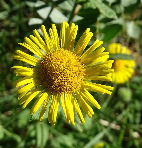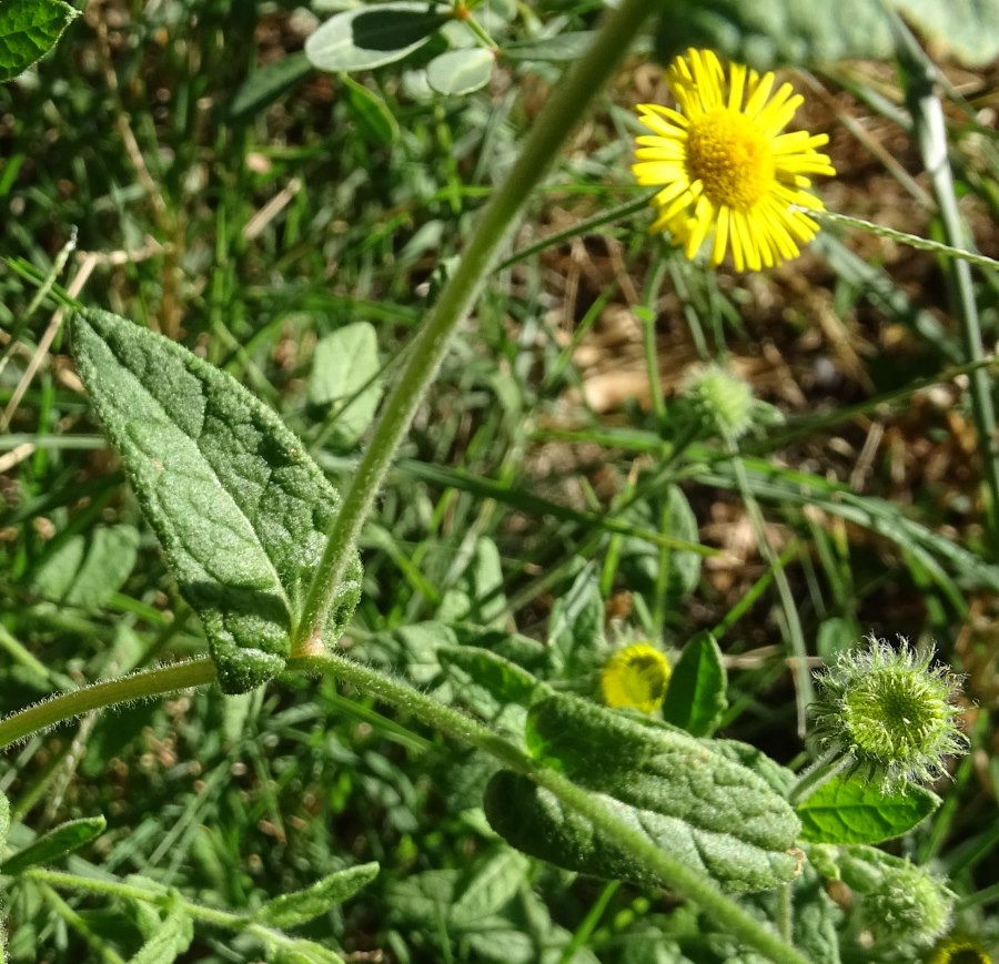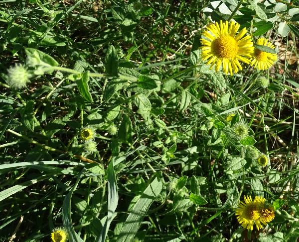 Italian name(s): Arnica falsa (Toscana), Arnica italiana (Toscana), Braghe de cucu (Liguria, Cogorno), Braghe de lù (Liguria, Chiavari), Buscina (Liguria, S. Maria di Rapallo), Coniza mezzana (antichi), Erba da tosse canina (Liguria, Pontedecimo), Erba fetente (Calabria), Incensaria (Toscana), Incensaria comune (Italia), Lariu (Liguria, Ormea), Maruggiu (Liguria, Ruta), Marugin (Liguria, Santa Margherita), Menta salvatica (Toscana), Menta selvatica (Italia), Mentastio (Toscana, Cerreto d'Empoli), Mentastro (Italia), Mentastru (Liguria, Genova), Mentastu (Piemonte, Val S. Martino), Mentraschi (Liguria, Valle di Polcevera), Nasca senza odore (Liguria, Pontedecimo), Pulicaria dissenterica (Italia), Uegge d'ase (Liguria, Barassi).