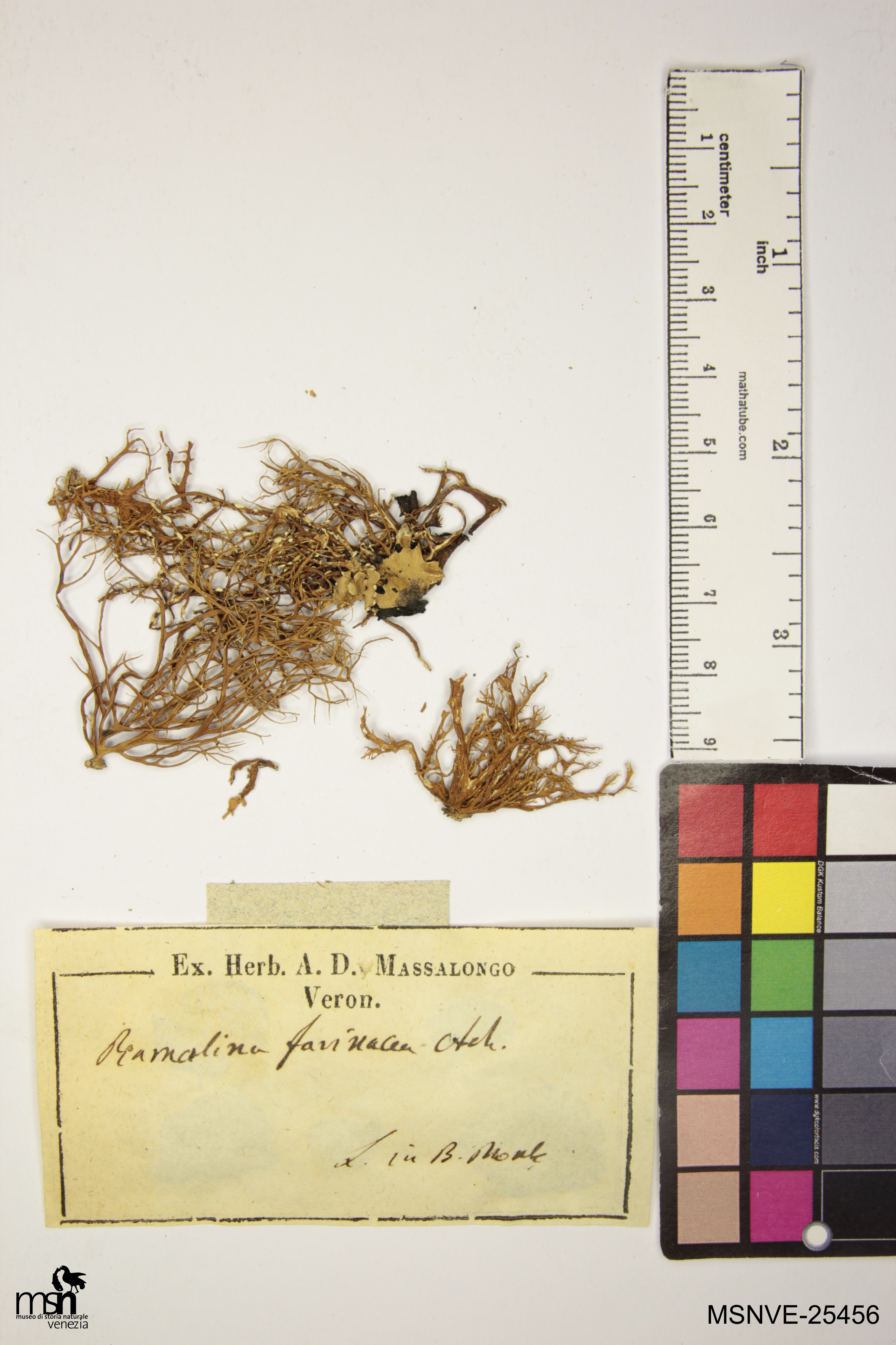 Trascrizione del cartellino verbatim: Ramalina farinacea Ach. L. in B. Monte