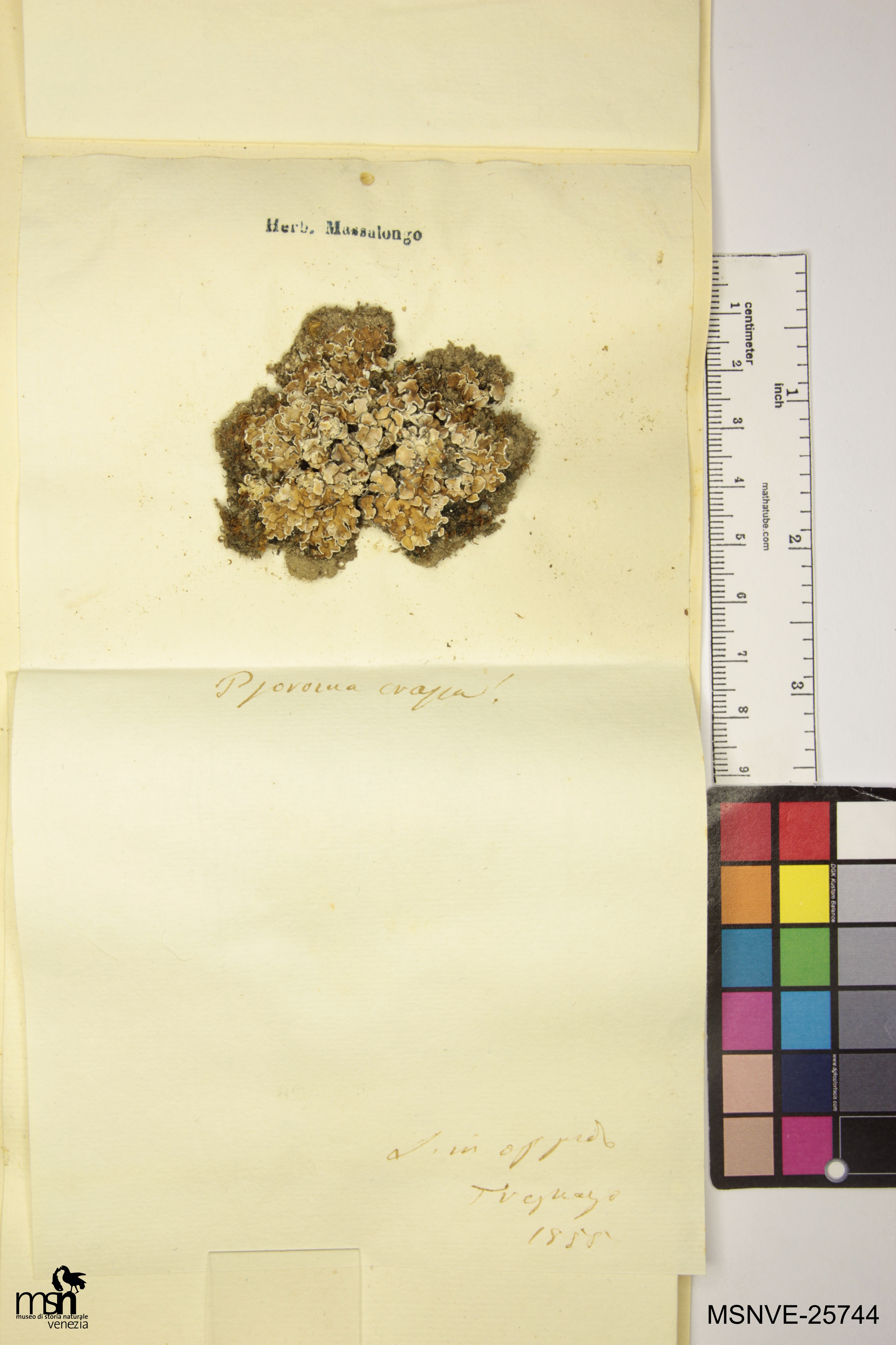 Trascrizione del cartellino verbatim: Psoroma crassa! L. in oppido Tregnago 1855