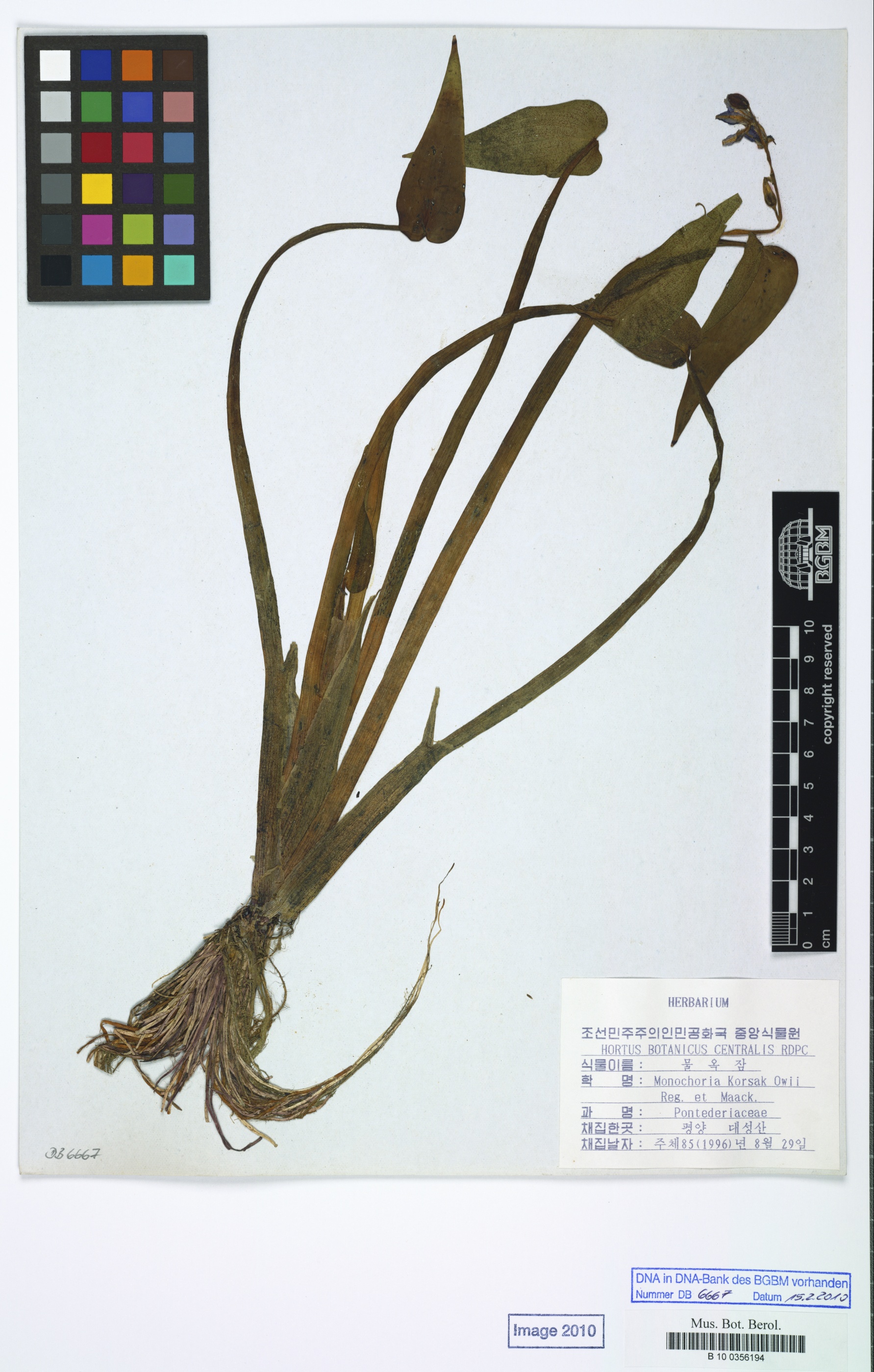 Sinonimi / Synonyms: Monochoria korsakowii Regel & Maack; Monochoria vaginalis (Burm.f.) C.Presl ex Kunth var. korsakowii (Regel & Maack) Solms;