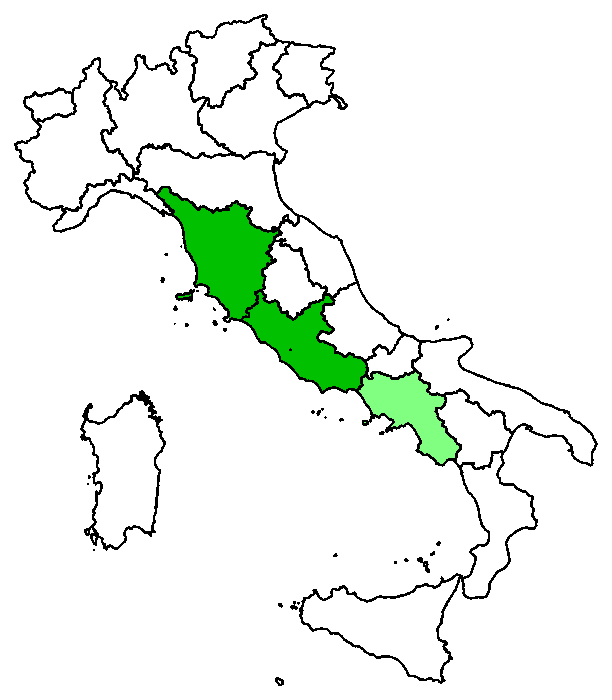 Campania: non ritrovata in tempi recenti / historical record; Lazio; Toscana;
