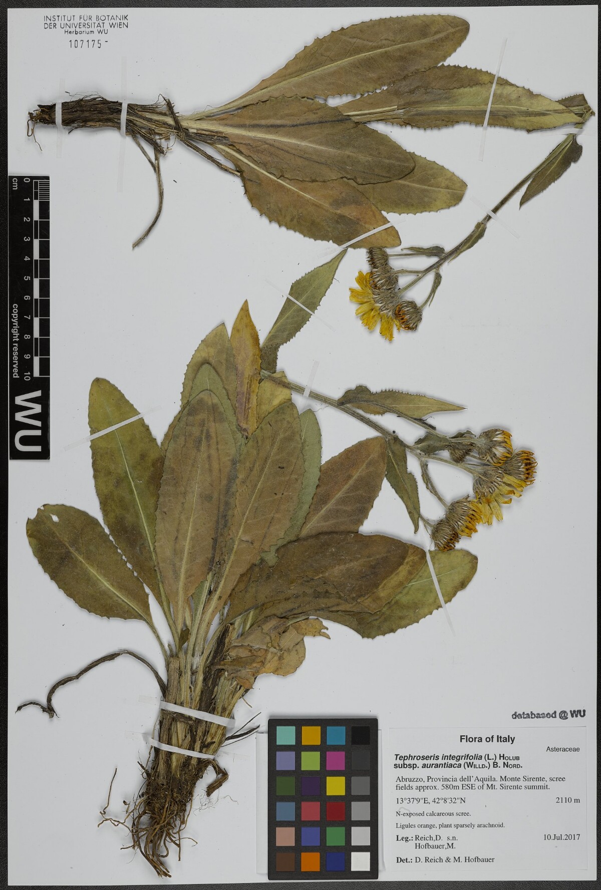 Sinonimi / Synonyms: Cineraria aurantiaca Willd.; Senecio aurantiacus (Willd.) Less.; Senecio integrifolius (L.) Clairv. subsp. aurantiacus (Willd.) Briq. & Cavill.; Tephroseris aurantiaca (Willd.) Griseb. & Schenk;